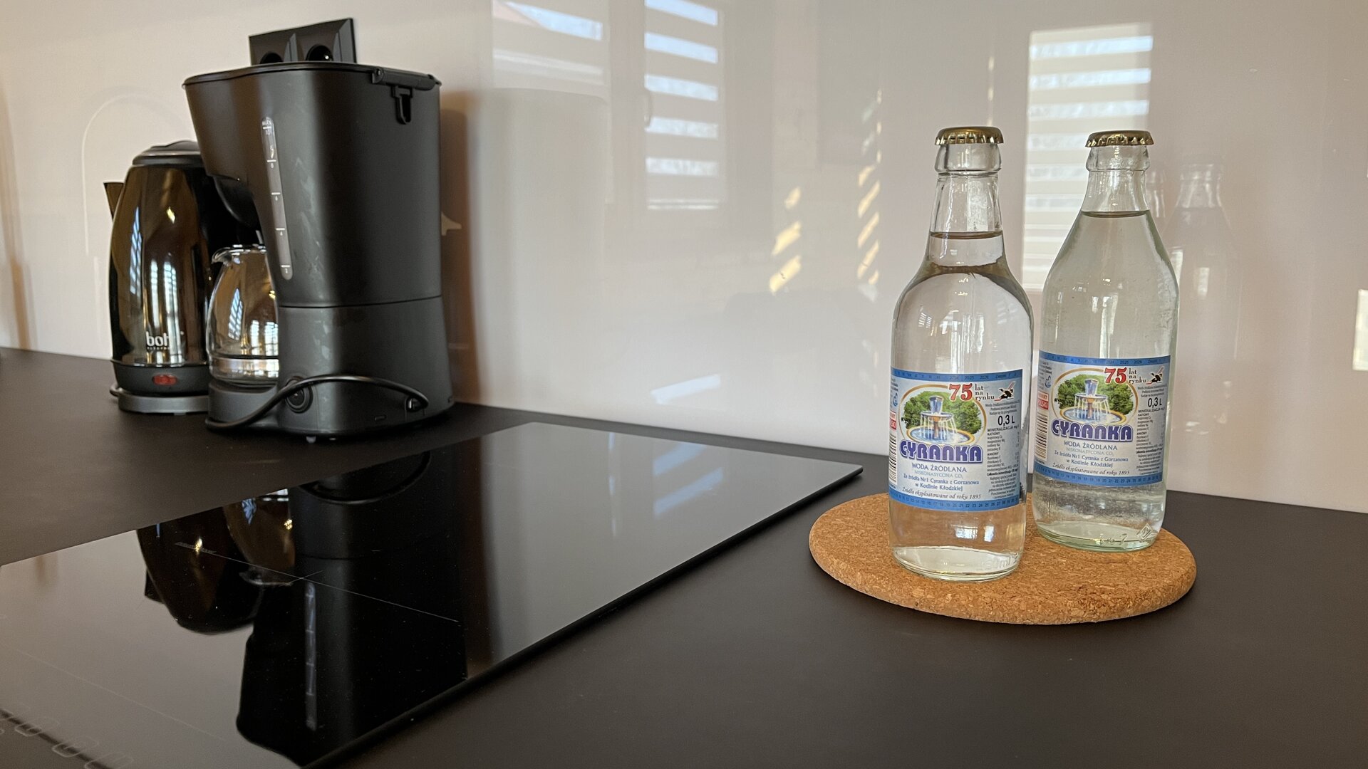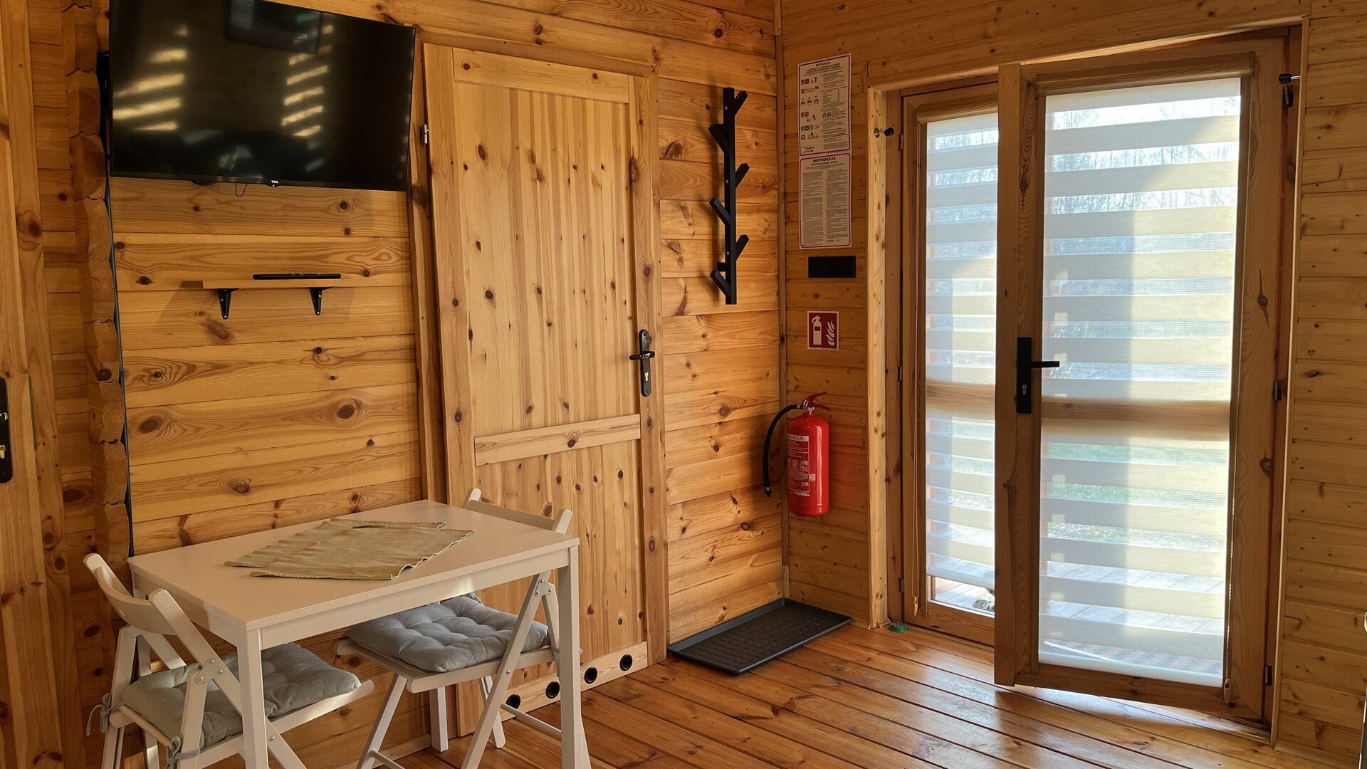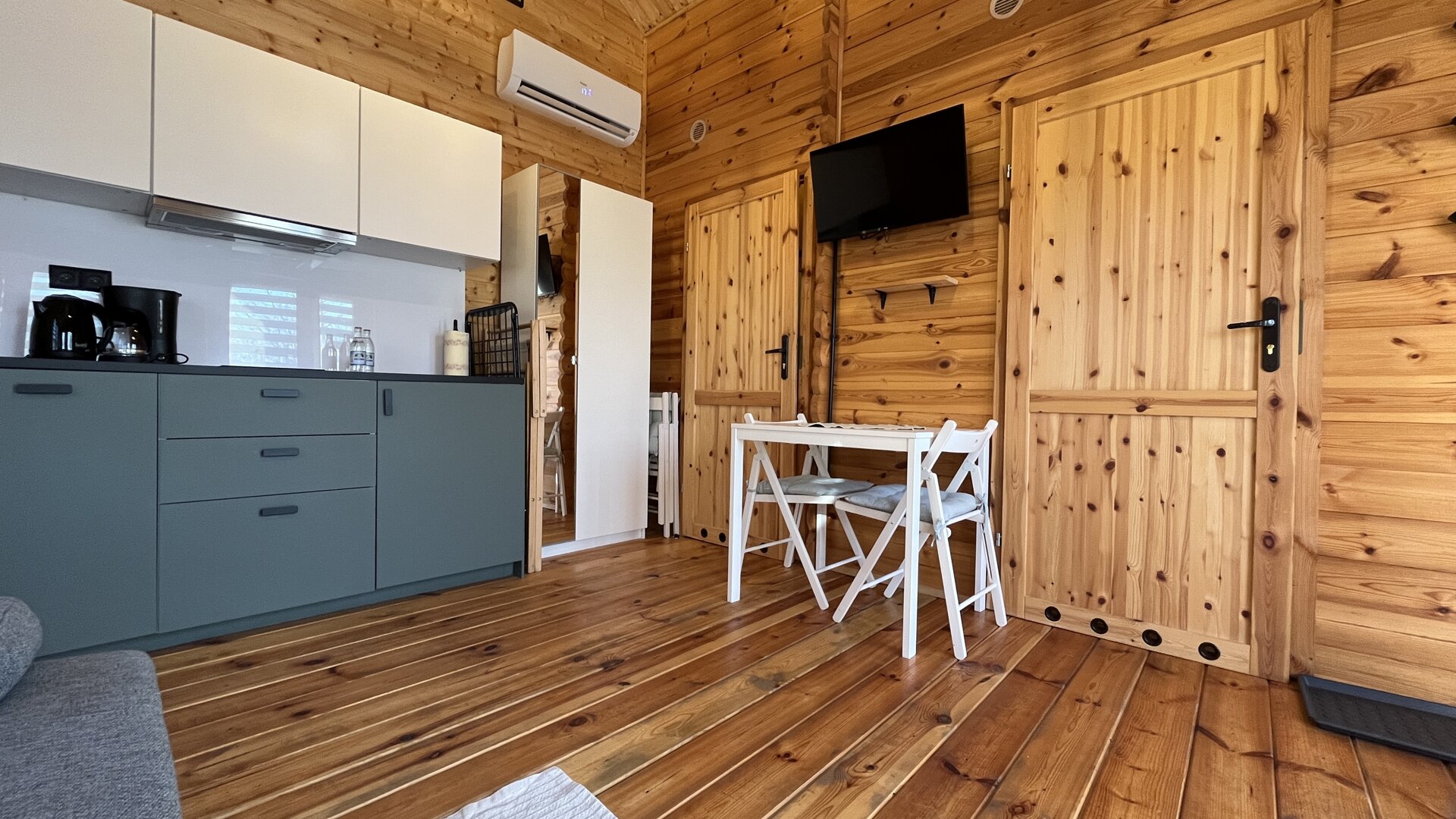 Nasze domki zostały zaprojektowane z myślą o Twoim komforcie, dlatego są wyposażone w klimatyzację, a także Wi-Fi, Smart TV i Netflix dla wieczornej rozrywki. Na zewnątrz czekają leżaki, hamaki, grill oraz miejsce na ognisko, gdzie możesz delektować się spokojem otaczającej przyrody. W każdym domku znajdziesz również kompletnie wyposażoną kuchnię - w płytę indukcyjną, zmywarkę, ekspres do kawy, lodówkę, mikrofalę, przybory kuchenne i garnki.